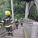 Start war um 18 Uhr 12 vom Parkplatz Hoblschlag. Mit der gesamten Atemschutzausrüstung gingen wir zum Turm. Unterwegs wurde eine kleine Geschicklichkeitsübung durchgeführt. Um 18 Uhr 37