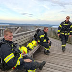 Dann begannen wir den Aufstieg auf den Turm. Die Aussichtsplattform erreichten wir um 18 Uhr 40 !!! in 3 Minuten !!!! Mit dem Pressluftatmer und dem Gewicht der ATS-Ausrüstung