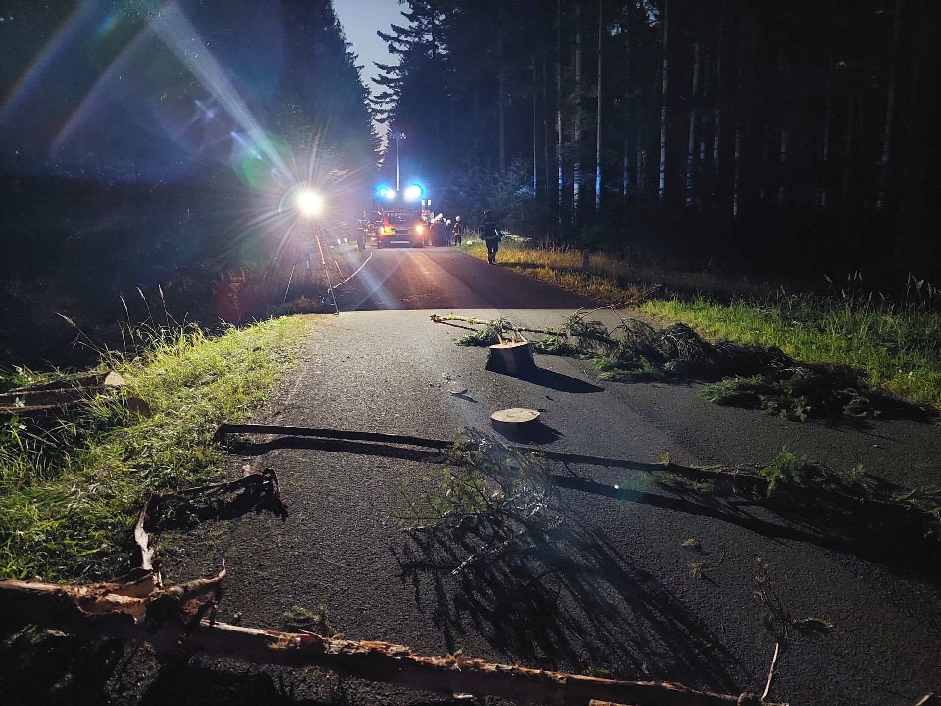 Und als endlich Ruhe eingekehrt war, passierte das Undenkbare: "Alarm" um 5 Uhr morgens! Sturmschaden. Ein umgestürzter Baum und große Äste blockierten die Straße. Müde Gesichter, gähnende Helden